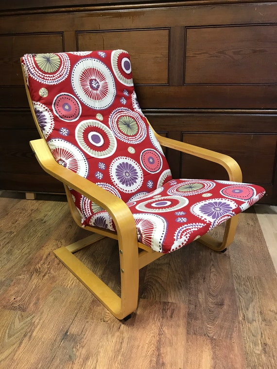 Ikea Poang Slip Cover In Beautiful Red Multi Circle Pattern Etsy Uk